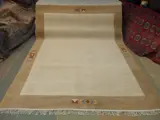 De kleur van donkerbeige op het spoor en lichtbeige in het midden van het tapijt hangt af van hoe de wol is gekamd