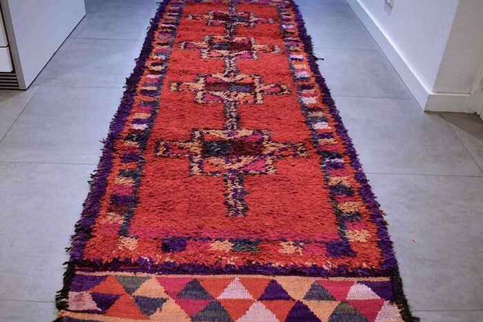 Prachtig semi-antiek tribaal Kurdi loper vloerkleed. Maat ca. 306x87 cm.