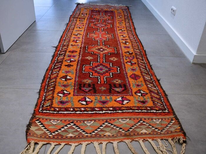 Prachtig semi-antiek tribaal Kurdi loper vloerkleed. Maat ca. 306x87 cm.