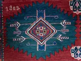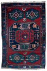 Dit prachtige tapijt heeft een lichtgevende wol en de "elektrische" medaillons hebben verrassend diepe, gloeiende blauwtinten met een betoverende abrasem die zichtbaar is door een beetje met licht te spelen. Er zijn enkele her en der kleine reparaties, enkele blauwe vlekken die alleen zichtbaar zijn op de achterkant, en de zelfkanten zijn teruggeplaatst [zie foto's]. Het tapijt is schoon en netjes.