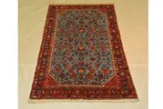U biedt op een oud Perzisch tapijt -Rudbar- in algehele goede staat. In het noordwesten van Iran ligt het kleine stadje Rudbar. Met groot vakmanschap worden hier Perzische tapijten van goede kwaliteit gemaakt, die indruk maken met hun artistieke patronen. Deze Perzische tapijten zijn precies goed voor liefhebbers van gedetailleerd werk. Dit ongeveer 8 mm dikke tapijt wordt ook gekenmerkt door een artistiek patroon. Dit maakt dit vloerkleed tot een zeer mooie eyecatcher en een begeerd collectors item. De afmetingen zonder franjes zijn: 125 x 83 cm.