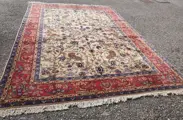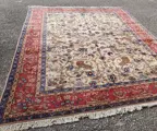 Een Roemeens tapijt met een figuratief tabriz dessin handgemaakt in perfecte staat, nog niet gebruikt, nog met de hoge sluier, de lange frances met pure schapenwol 100%100