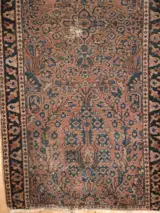 Klein kostbaar en antiek donkerblauw Perzisch tapijt 132X62 cm