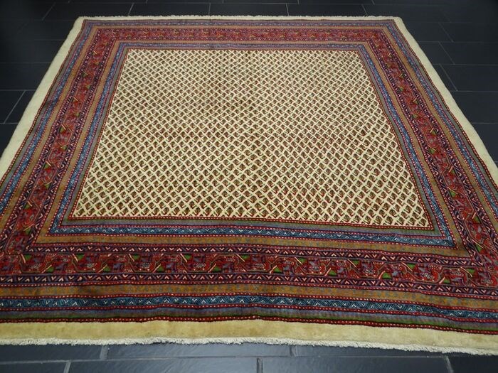 Er wordt een handgeknoopt Sarough-tapijt aangeboden