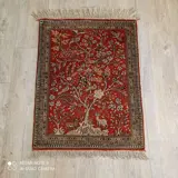 Een figuurlijk Ghom-tapijt uit de stad Ghom in Iran