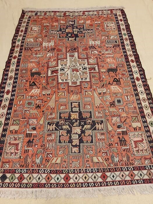 Zeer mooie Perzische Zijde Soumak Kelim. Het is zijde op katoen. Het is een oud stuk maar nooit gebruikt. Kijk naar de foto's.