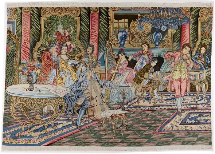 Tapijten met zijdegehalte zijn bijzonder nobel en worden vooral gekenmerkt door hun zeer zachte, fijne en glanzende eigenschappen.