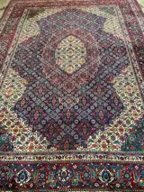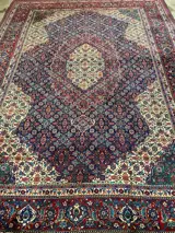 Prachtig handgeknoopt tapijt van wol. De katoen is op een natuurlijk manier geverfd zonderchemicaliën.De hoofd kleur is cream Donker Blouw Groen Rood