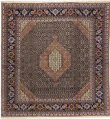 Dit vloerkleed komt uit Tabriz en is vakkundig geknoopt van fijne wol en zijde.
