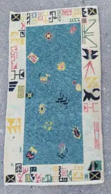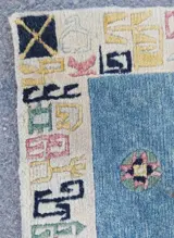 Tapijt met een Zwitsers label (ik neem aan dat het daar wordt gedistribueerd) in goede staat, meet ongeveer 160 cm hoog x 70 cm breed. Aangetekende verzending per koeriersbedrijf.