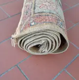 Schitterend handgemaakt antiek handgeanodiseerd tapijt in uitstekende algemene staat, 170x88cm, zoals te zien op de foto's.Ik denk dat het wol, zijde en katoen uit Oezbekistan is?!Ik verkoop het zoals het op de foto staat, bedankt.