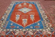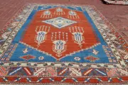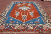 It is very unique vintage Turkish Rug,professionally washed and ready to use. The Age is about 1970's It is a unique hand made rug with naturel dyes. Excellent Condition.