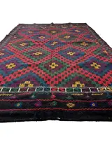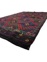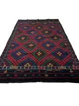 Deze unieke handgeweven vintage kelim is gemaakt in de jaren 70-80 door nomaden in het dorp Usak. Voordat ze met het weven begon, was de wever haar schapen aan het scheren, de wol aan het schoonmaken, kammen en spinnen om het beste garen van kilim te hebben. Tapijten weven is een traditie in Turkije en elk dorp en elke stam heeft een andere ontwerp- en weeftraditie. Dit vloerkleed heeft een karakteristieke combinatie van kleuren en design.