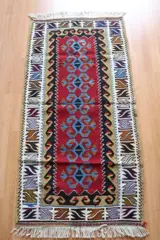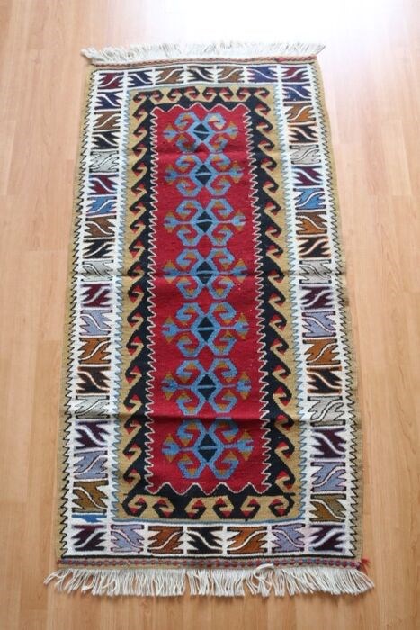 Het is een vloerkleed dat is geweven met traditionele motieven uit de regio Usak.