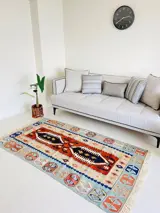 Oosterse kelims behoren tot de mooiste schatten ter wereld. Ik zou graag de nadruk willen leggen op de staat van de kelim. De kleuren van de kelim zijn iets vervaagd, wat natuurlijk de leeftijd en vintage aard laat zien. De algehele conditie is goed gezien de leeftijd. De kelim wordt gereinigd met niet-chemische shampoo. Item is klaar om verzonden te worden. Het wordt verzonden via dhl express voor in aanmerking komende landen (EU, VS, Australië) waar 1-4 dagen levering gegarandeerd is. Voor de rest van de nodige informatie over het item vindt u hieronder.