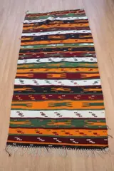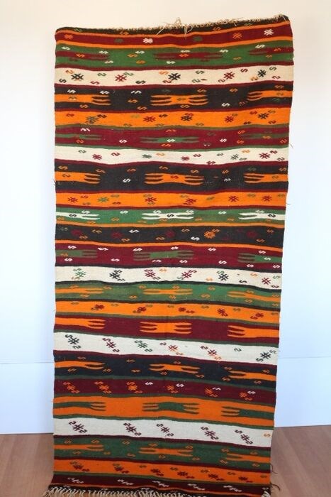 Het is een vloerkleed dat is geweven met traditionele motieven uit de regio Usak.