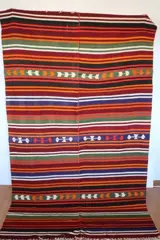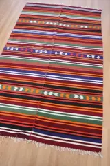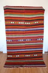 Het is een vloerkleed dat is geweven met traditionele motieven uit de regio Usak.