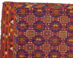 Vintage Turkse wollen kelim vloerkleed met geometrisch ontwerp. Volledig handgeweven primitieve veelkleurige kelim. Gemaakt van hoogwaardige materialen. Geweven door handgeschoolde nomaden uit Turkije.