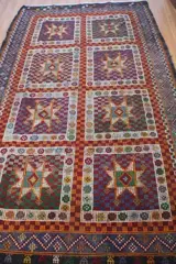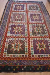 Het is een vloerkleed dat is geweven met traditionele motieven uit de regio Usak.