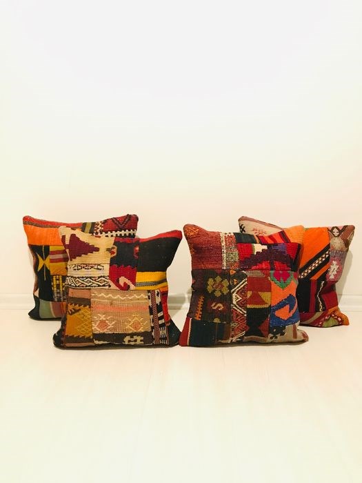 Etnische kussenset van 4 die is gemaakt van dezelfde Anatolische Oushak Kelim.