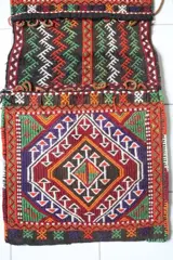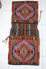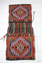 Dit is een van de vintage Turkse Usak kilim zadeltassen die we in onze voorraad hebben.