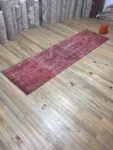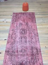 Dit vintage wol op katoen loper vloerkleed is handgemaakt geknoopt en geweven