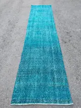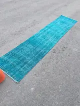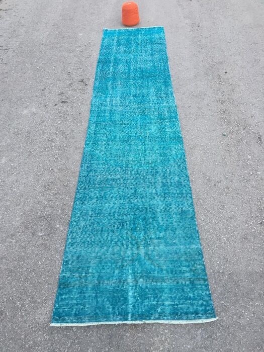 Dit vintage wol op katoen loper vloerkleed is handgemaakt geknoopt en geweven