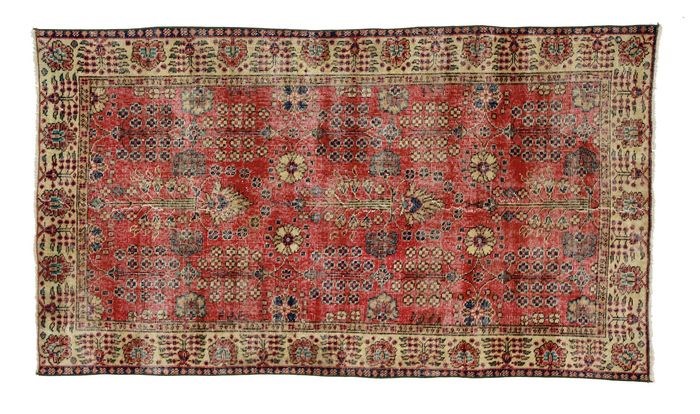Deze tapijten worden verzameld van Anatolische dorpelingen en vervolgens zorgvuldig geschoren en gewassen in onze fabriek. Origineel ouderwets tapijt.