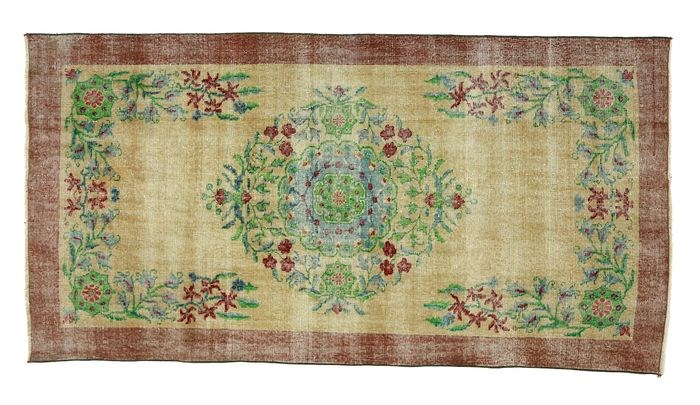 Deze tapijten worden verzameld van Anatolische dorpelingen en vervolgens zorgvuldig geschoren en gewassen in onze fabriek. Origineel ouderwets tapijt.