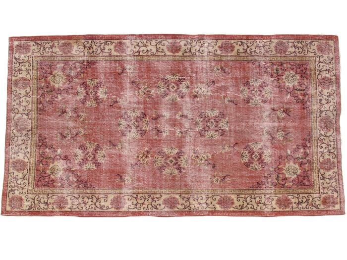 Handgeknoopt vintage Usak vloerkleed, noodlijdend, laagpolig vloerkleed gemaakt van wol en katoen. Gemaakt door nomade Anatolische vrouwen door hoogwaardige materialen. Over het algemeen in goede staat, er is geen schade of gerepareerd gebied, professioneel schoongemaakt en klaar voor gebruik.