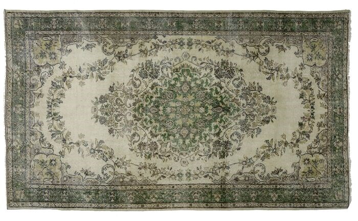 Deze tapijten worden verzameld van Anatolische dorpelingen en vervolgens zorgvuldig geschoren en gewassen in onze fabriek. Origineel ouderwets tapijt.