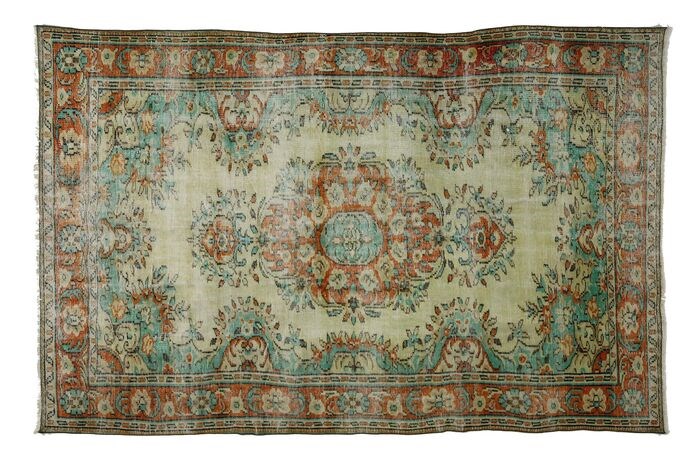 Deze tapijten worden verzameld van Anatolische dorpelingen en vervolgens zorgvuldig geschoren en gewassen in onze fabriek. Origineel ouderwets tapijt.