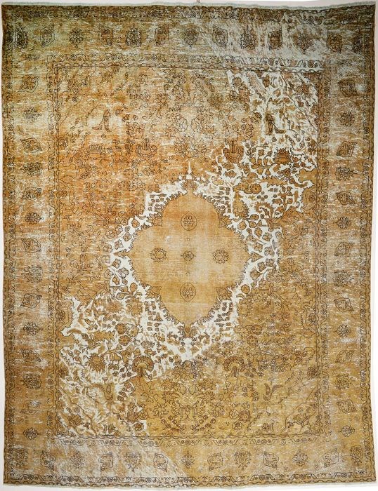 Gekleurde vintage tapijten zijn gemaakt van minstens 20-50 jaar oude Perzische tapijten. Elk tapijt wordt zorgvuldig geselecteerd en onderworpen aan een uniek proces van kleurneutralisatie voordat het tapijt opnieuw wordt geverfd in een nieuwe fascinerende kleur. Het resultaat is een combinatie van een traditioneel Perzisch tapijtontwerp met een eigentijdse retrostijl. Na verloop van tijd kan dit product enkele van zijn oorspronkelijke kleurkenmerken verliezen en een nog unieker uiterlijk krijgen.