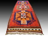Ongelofelijk semi-antiek tribaal Kurdi Herki loper vloerkleed. Maat ca. 371x105 cm.