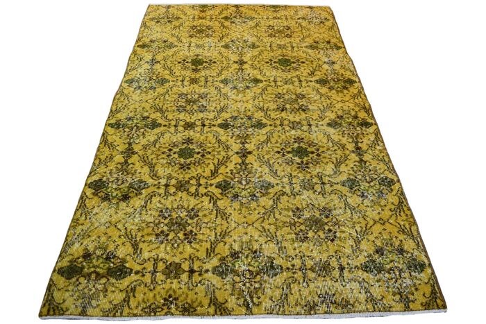 Ongelooflijk luxe geel vintage Oushak vloerkleed. Uitstekende vintage staat, professioneel schoongemaakt en klaar voor gebruik. Maat ca. 206x117 cm.