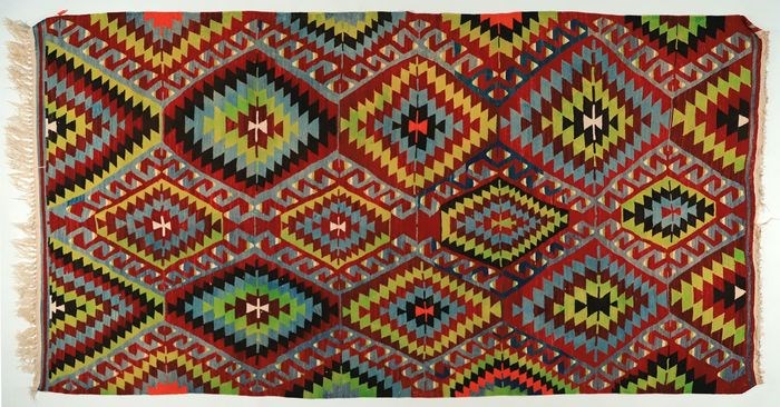 Deze kelims geknoopt door dorpsvrouwen, aan de westkant van Anatolië. (Egeïsche regio)