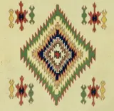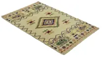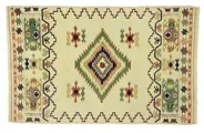 Handgeknoopt,% 100 wolgaren. En origineel vloerkleed.