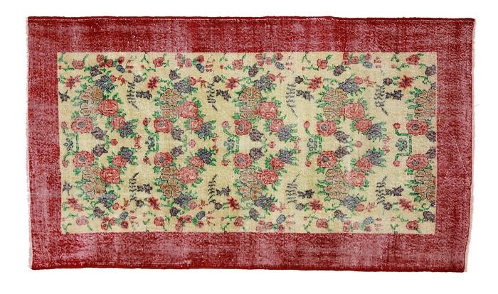 Handgeknoopt,% 100 wolgaren. En origineel vloerkleed.