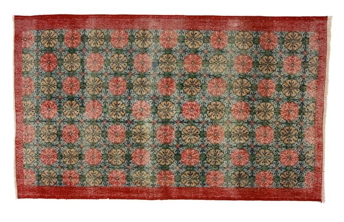 Handgeknoopt,% 100 wolgaren. En origineel vloerkleed.