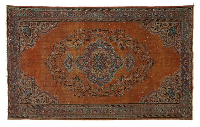 Handgeknoopt,% 100 wolgaren. En origineel vloerkleed.