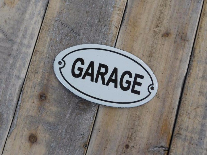 Een mooi emaille bordje voor aan de deur van uw garage, emaille.