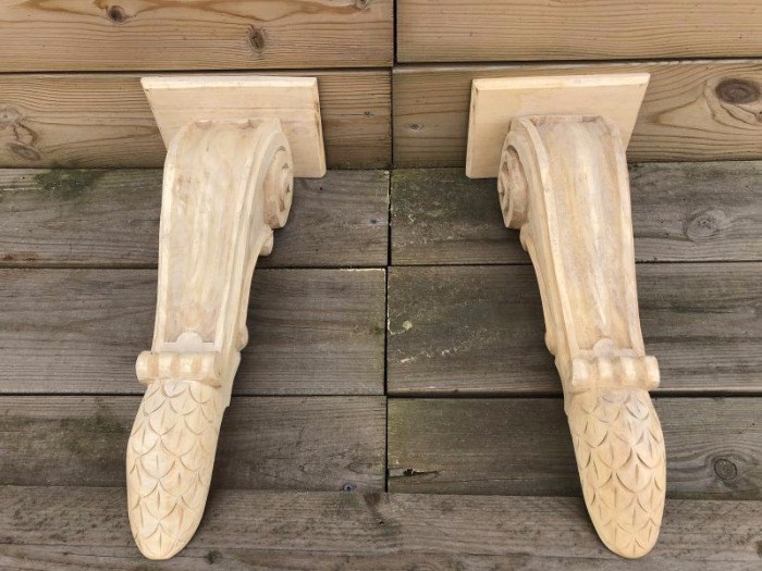 Deze wandconsole-set is met de hand gesneden uit koloniaals hout (top kwaliteit hout) en is zeer fraai in detail.