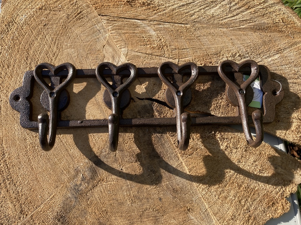 GIETIJZEREN KAPSTOK MET 4 HARTEN HAKEN nieuw