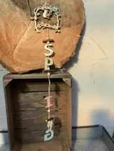 Houten hanger met “Spring” tekst.