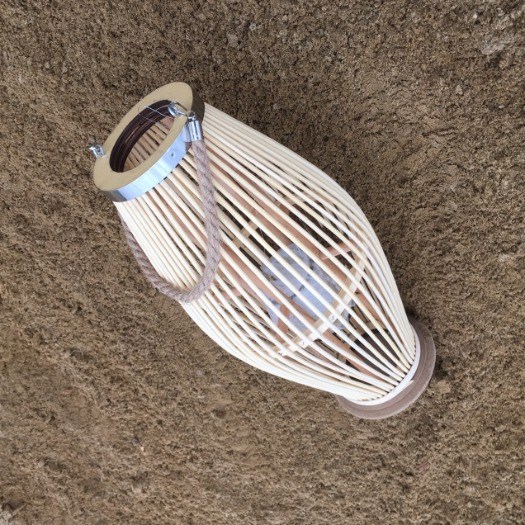 Prachtige slanke lantaarn van naturel bamboe in Ibiza stijl.