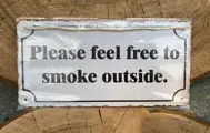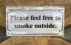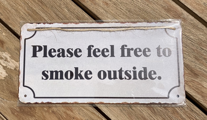 Leuk metalen bordje met tekst “PLEASE FEEL FREE TO SMOKE OUTSIDE”