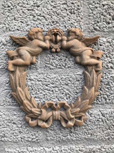 Mooie muurdecoratie met een engelen tafereel, kan buiten en binne opgehangen worden.