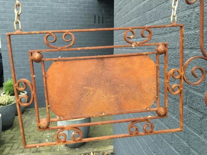 Leveromvang: 1 x smeedijzeren naambord compleet, rust.