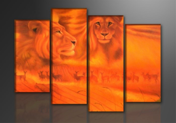 Nieuw canvas schilderij 4-luik Afrika Leeuw 130 x 80 cm