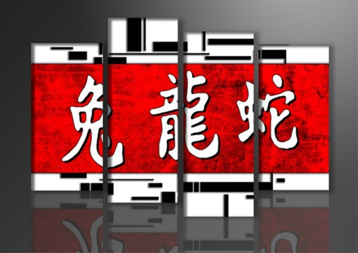Nieuw canvas schilderij 4-luik China Rood Wit 130 x 80 cm